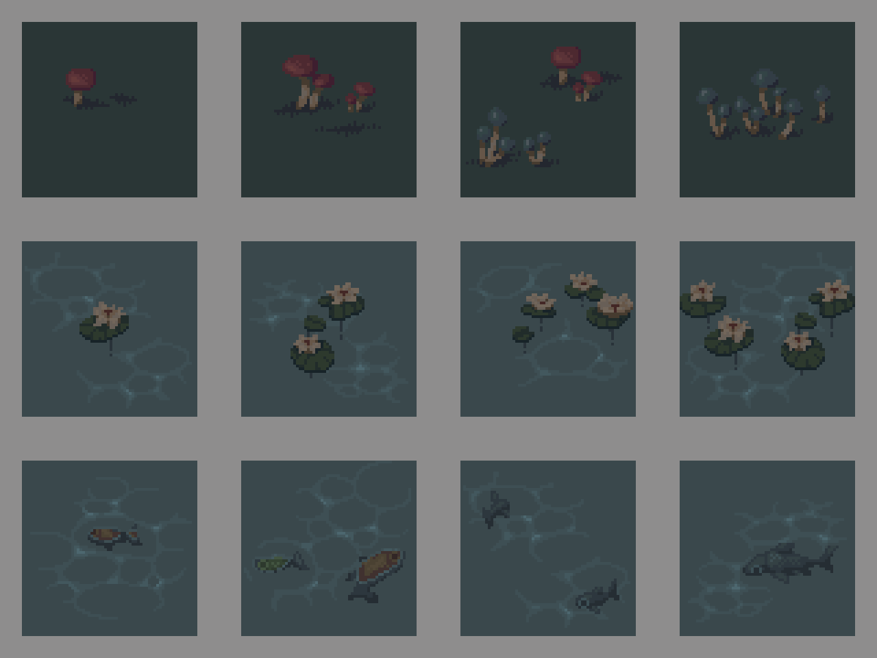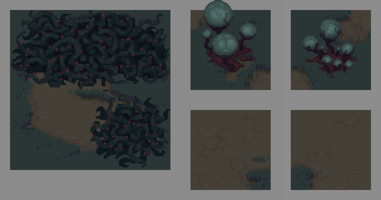 Each region is built from the ground up. Not just randomized, but procedurally designed to reflect its nature. Advanced positioning logic allows for highly detailed layouts, filled with decorations on both land and water, enriched by layered visuals, animated idle tiles, and traces of past runs.